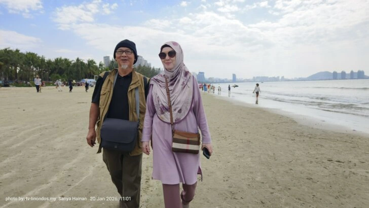 Pada pagi 20 Januari 2026, suasana damai dan cerah menyambut para pengunjung di Pantai Sanya, Hainan. Kami berjalan santai di sepanjang pesisir berpasir, berlatarbelakangkan deretan pokok kelapa dan bangunan tinggi yang melambangkan kemajuan bandar pesisir ini.