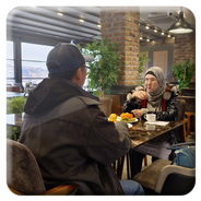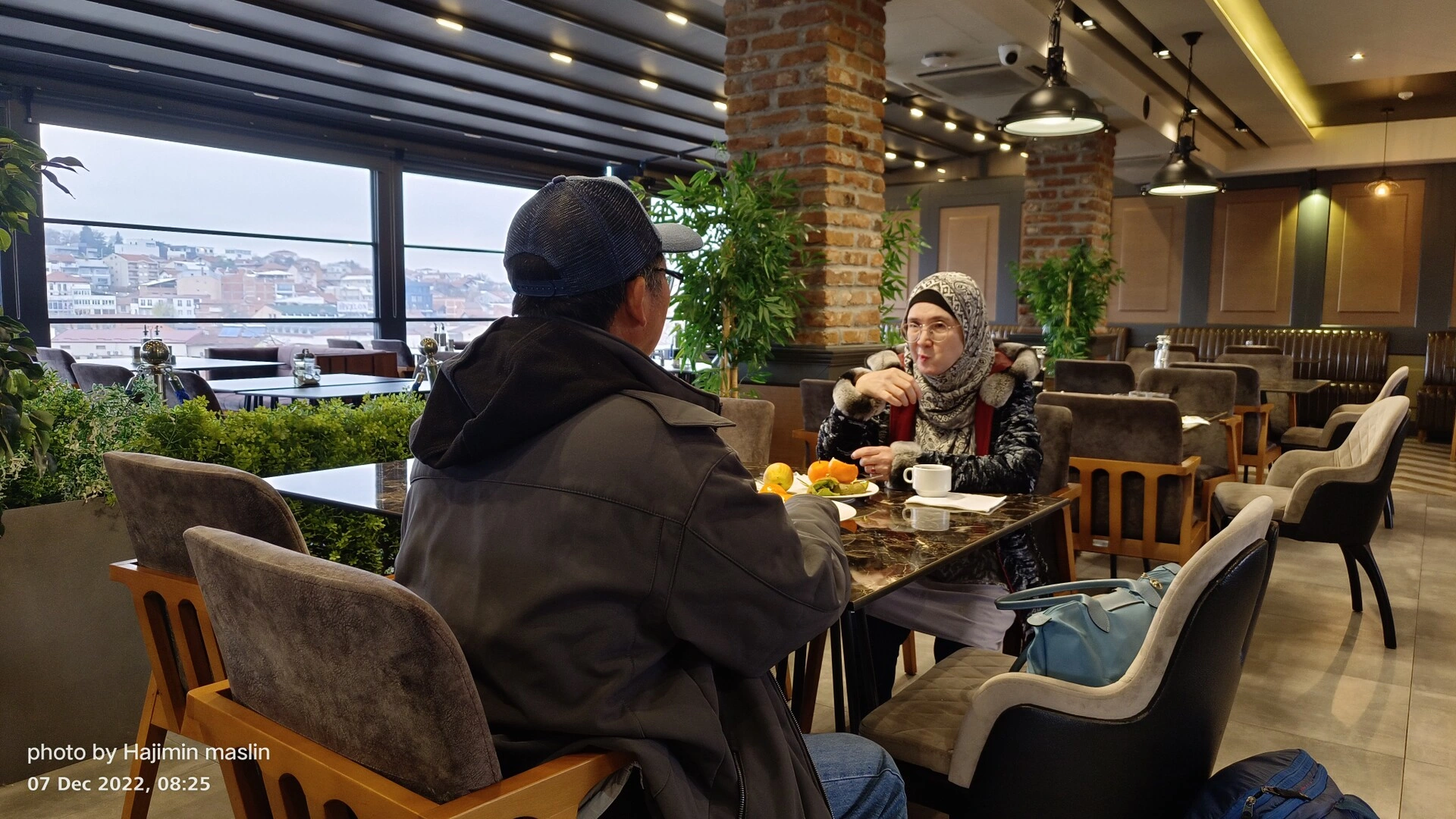 Abdaikan suatu kenangan dalam sebuah restoran di Hotel Goldan, Skojpe Macedonia yang sedang menikmati makanan (serapan pagi).