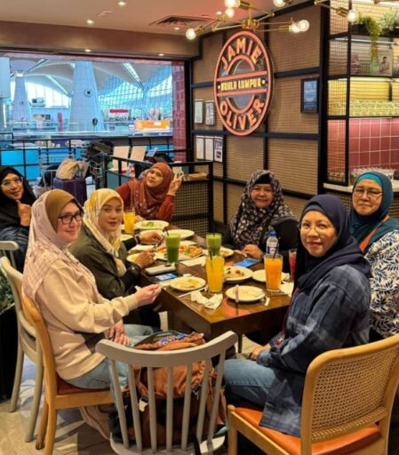 Di restoran yang sibuk di KLIA, KAMI duduk di meja besar, menikmati makanan dan minuman sebelum penerbangan ke Jerman. Bau makanan yang enak memenuhi udara, menambahkan lagi suasana meriah. "Ini memang sedap! Makanan Malaysia tak pernah mengecewakan," kata salah seorang sambil mengunyah makanan yang tersedia. Semua tertawa dan mengangguk setuju.