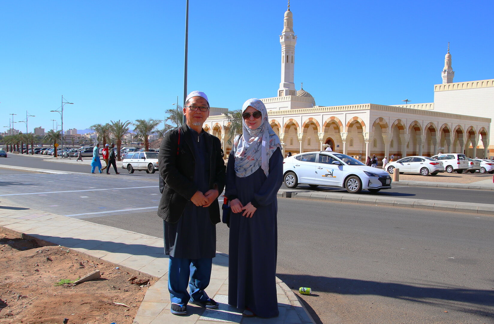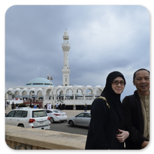 Abadikan kenangan di Bandar Taif berlatarkan Masjid Abdullah Ibnu Abbas.