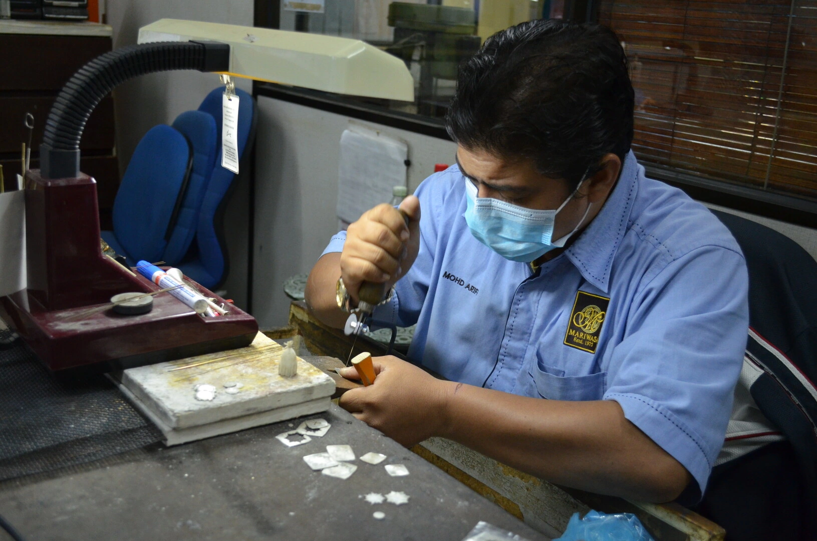 Abadikan kenangan berada di pusat kraftangan pembuatan barangan perak dan pingat berkuali tinggi yang terletak di Kuala Kangsar Perak.